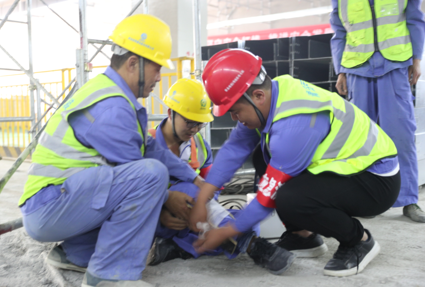 為扎實(shí)開展2019年“安全生產(chǎn)月”活動(dòng),牢固樹立“生命至上,安全生產(chǎn)”理念,全面提升安全生產(chǎn)事故應(yīng)急救援處置能力,2019年6月14日下午,我公司聯(lián)合中鐵四局地鐵項(xiàng)目部在青島市地鐵1號(hào)線工程機(jī)電系統(tǒng)施工七標(biāo)段遵義路站站區(qū)開展了一次以“防風(fēng)險(xiǎn) 除隱患 遏事故”為主題的安全生產(chǎn)事故應(yīng)急救援綜合演練活動(dòng),公司黨委書記、常務(wù)副總經(jīng)理張衛(wèi)財(cái)出席活動(dòng),安環(huán)部主任馬世革、中鐵四局、監(jiān)理公司、各分公司負(fù)責(zé)安全生產(chǎn)的副經(jīng)理、專職安全員及安環(huán)部全體人員共計(jì)80余人到現(xiàn)場(chǎng)觀摩演練。中鐵四局青島地鐵1號(hào)線機(jī)電七標(biāo)項(xiàng)目經(jīng)理劉洋擔(dān)任演練總指揮。公司商務(wù)經(jīng)理姜曉紅擔(dān)任主持人。